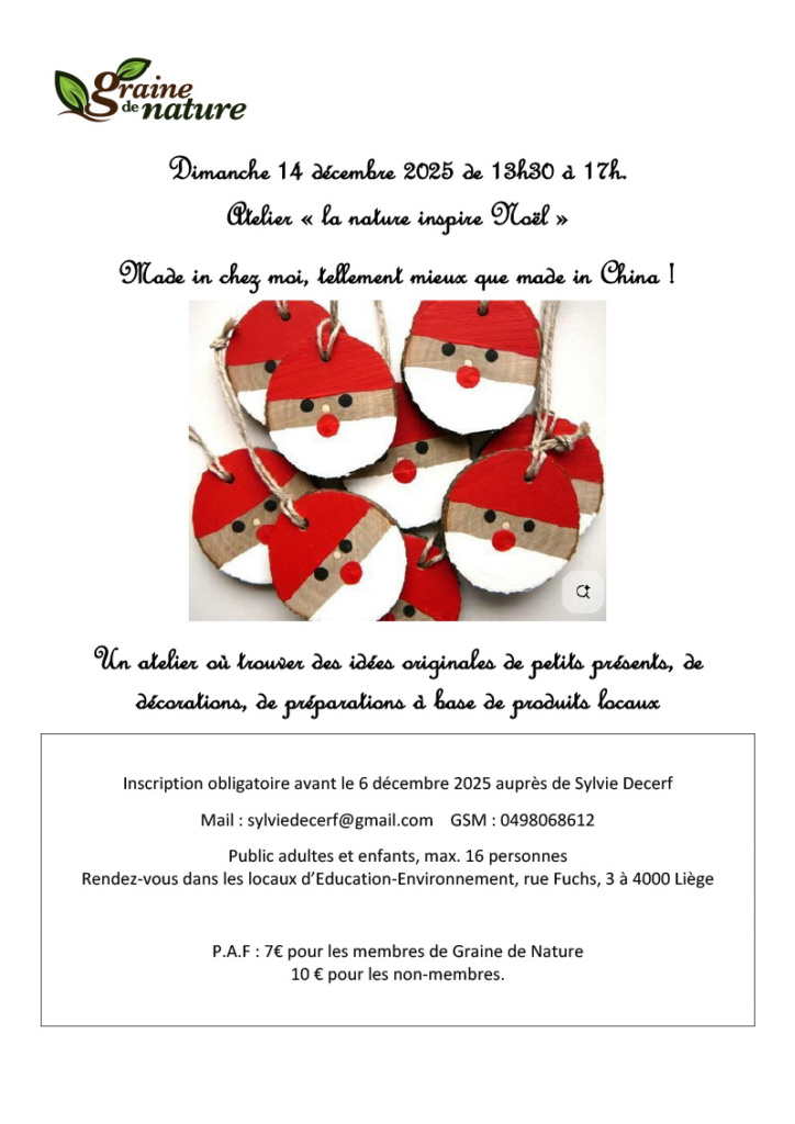 Le 19/11 à 14h, inscriptions via sylviedecerf@gmail.com